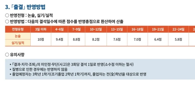 * 출결 관련 규정을 꼼꼼하게 확인하고, 궁금한 점은 학교에 문의하여 불이익을 받지 않도록 주의하시기 바랍니다.