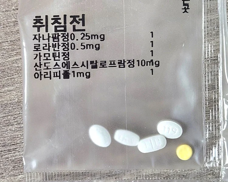 원래는 로라반정 0.5mg도 있었는데 제가 약 좀 줄여달라고 사정사정해서 빠지고, 지금은 위 4종을 처방받은 상태입니다.