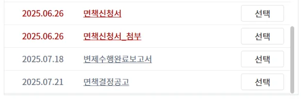 면책신청을 진행하였고 얼마있다 면책결정공고라는 항목이 추가되었습니다.