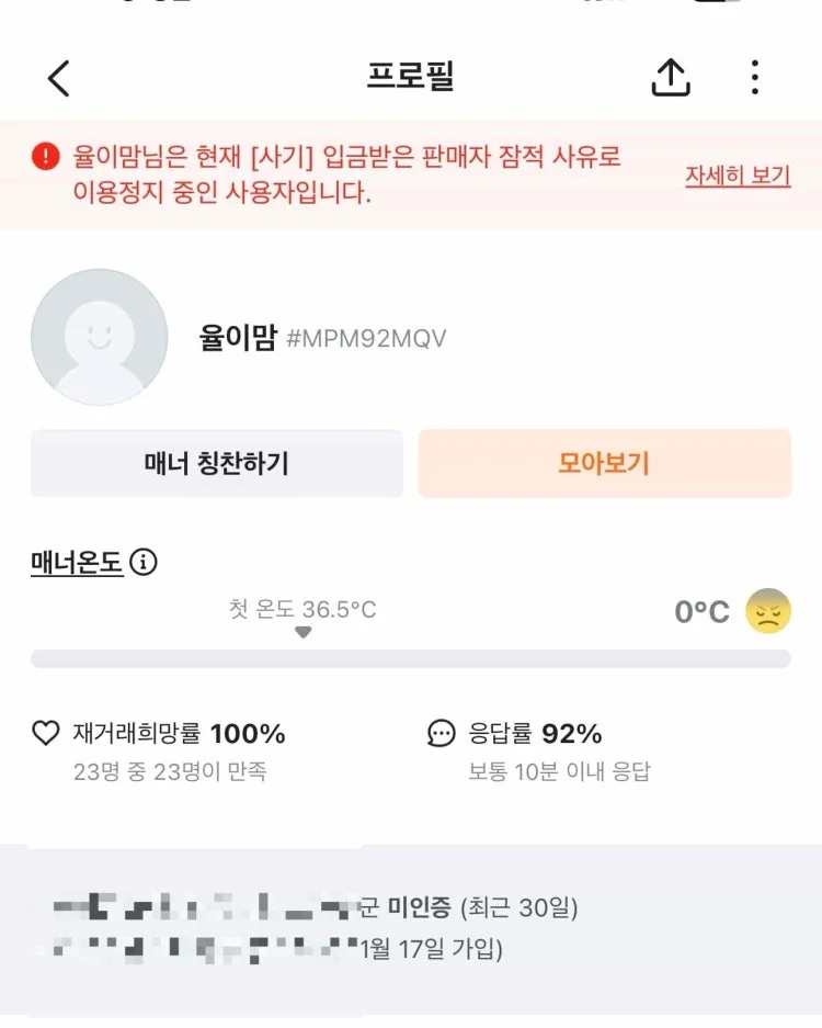* 당근마켓 계정 대여 사기는 빈번하게 발생하고 있으며, 대부분 계정 명의자가 책임을 지게 됩니다.