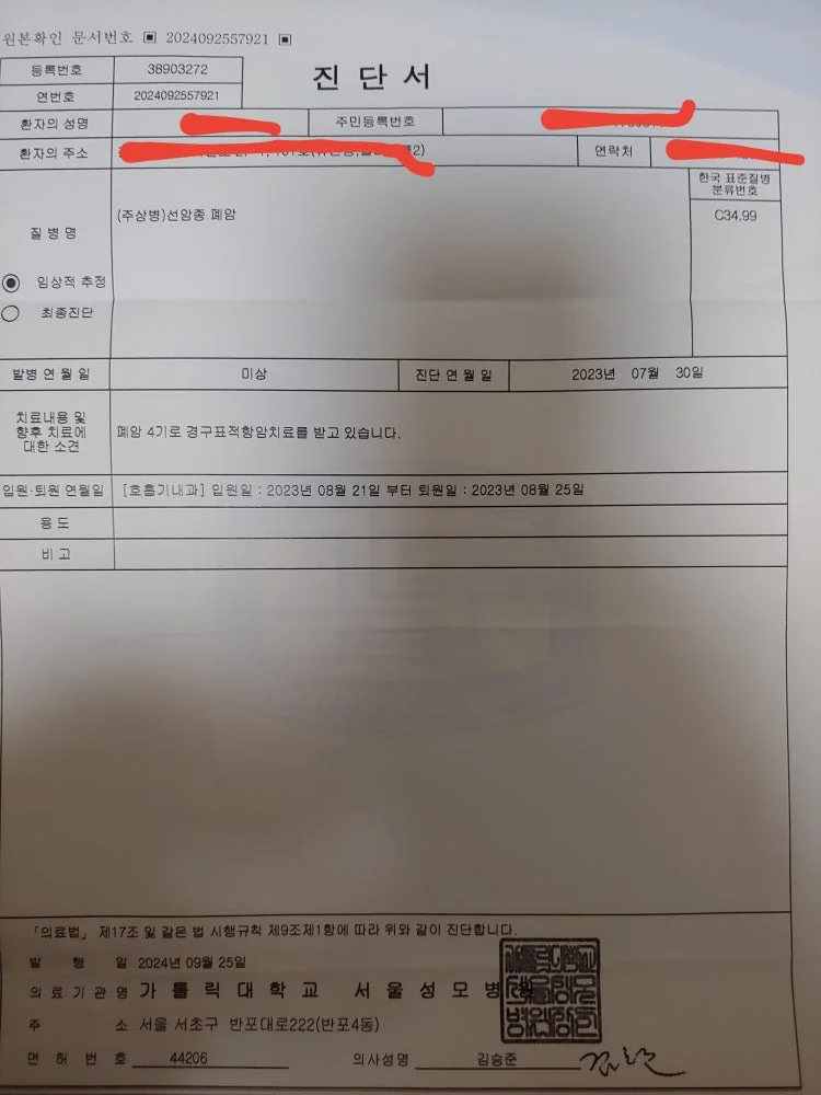 * 대처: 진단서, 소견서, 추가 의견서 외에도 다음과 같은 자료를 제출하여 암 투병 사실을 소명할 수 있습니다.