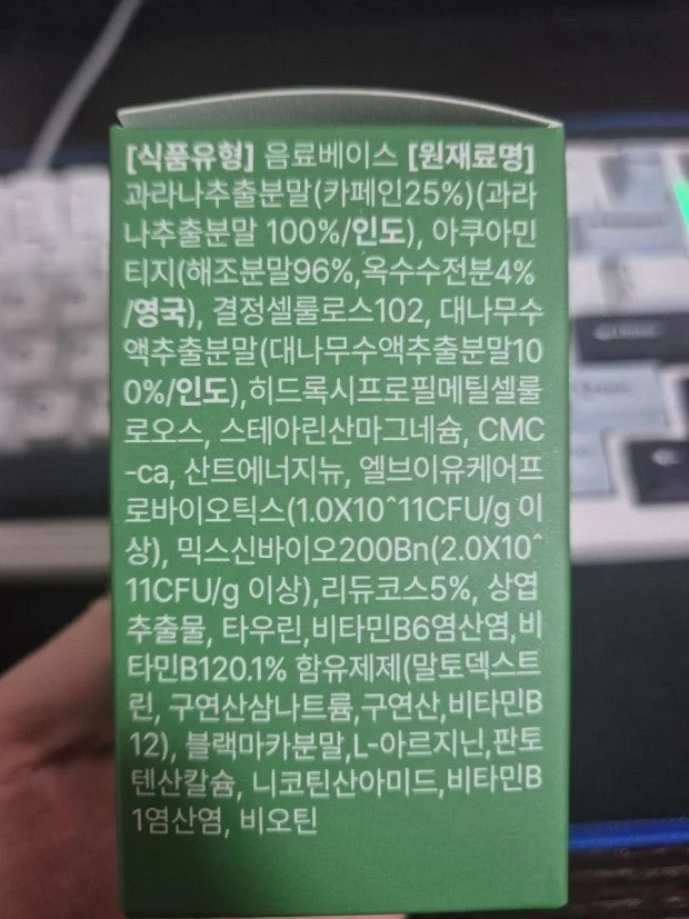 아래는 보조제 성분표입니다.