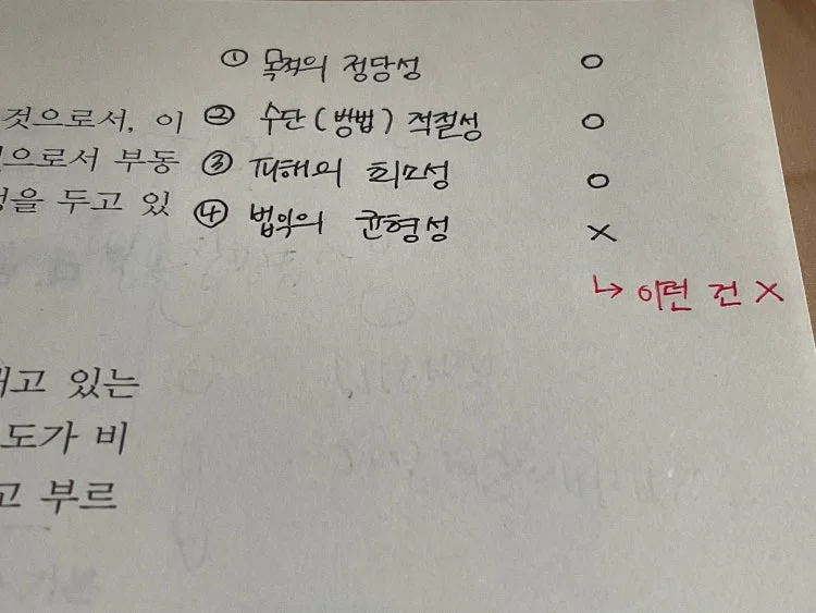 Dr.s Diagnosis안녕하세요. 사진에 나온 상황이 왜 안 되는지 궁금하시군요. 헌법 이국령 교수님의 과잉금지원칙에 대한 질문인 것 같습니다.