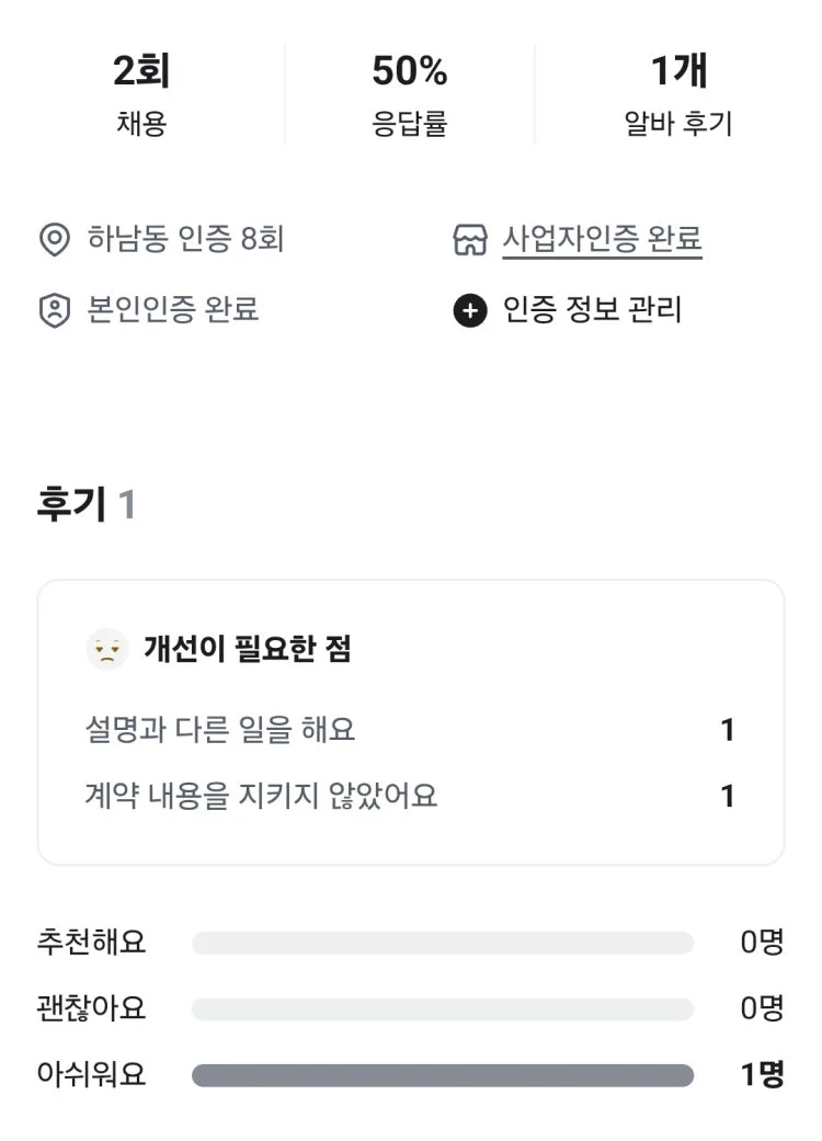 저는 가게 이미지 타격이 심각하고 후기를 보고 지원자들이 지원을 안할거라고 생각하는데