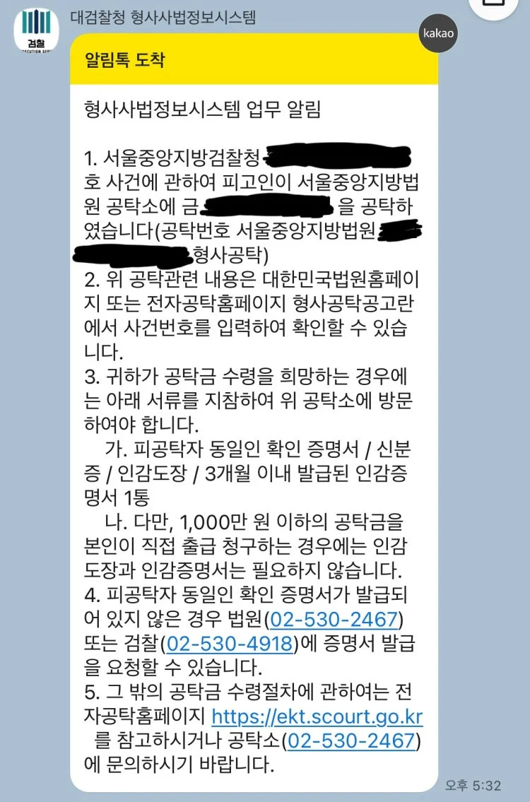 * 공탁금 수령 시, 가해자와의 합의 조건 등이 있을 수 있으므로, 신중하게 검토해야 합니다.