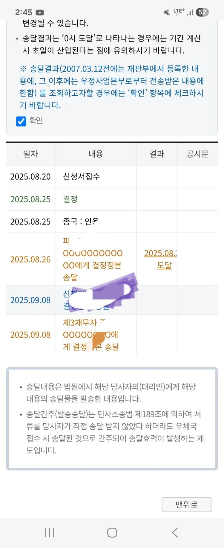 * 정확한 송달일은 법원에 문의하여 확인하는 것이 좋습니다.