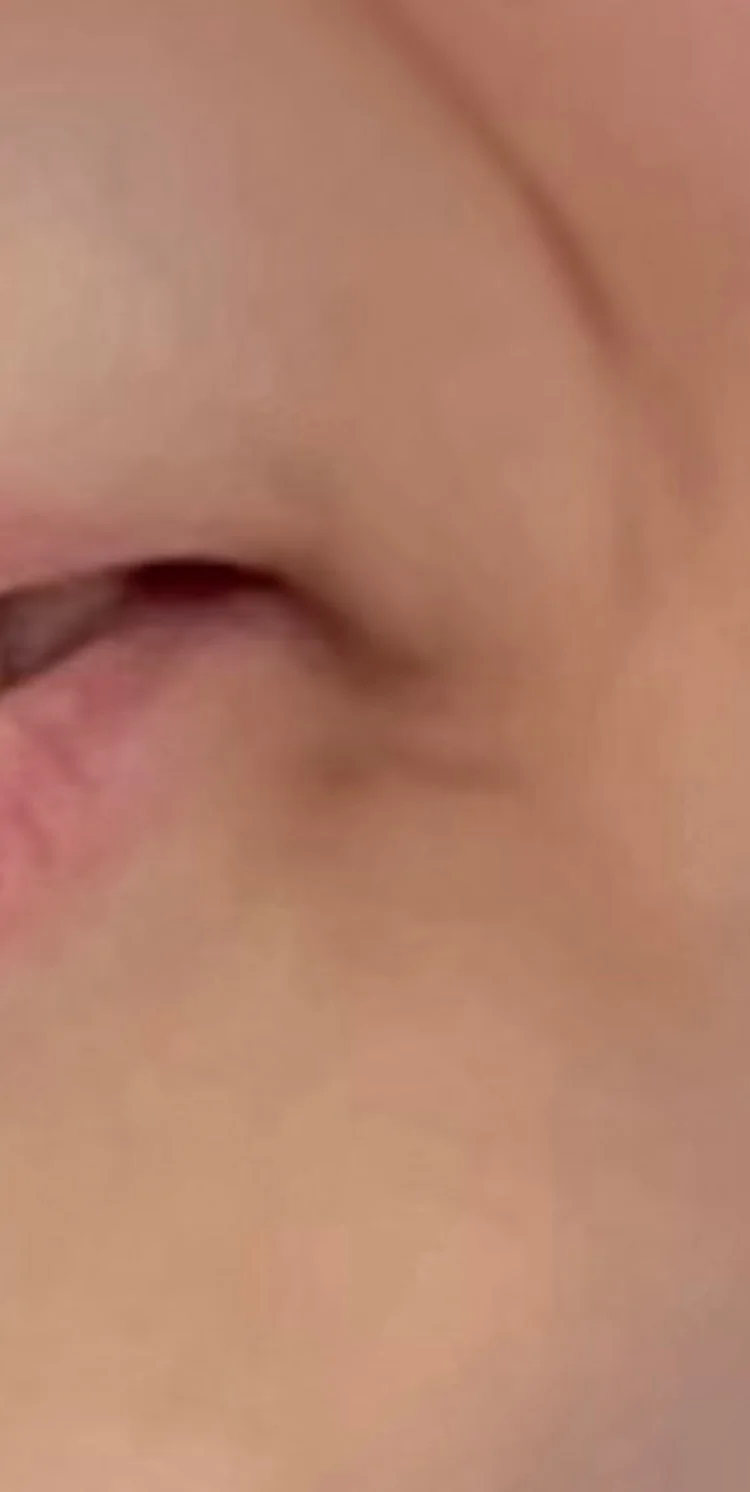 * 입꼬리 내림근 마사지: 입꼬리 아래쪽 턱 라인을 따라 부드럽게 쓸어 올리듯 마사지합니다. 1분간 반복합니다.
