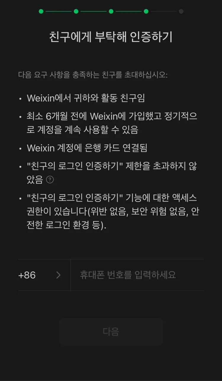 2. 친구에게 도움 요청: 위챗은 계정 복구 또는 삭제를 위해 친구의 인증을 요구하는 경우가 있습니다. 만약 주변에 위챗을 사용하는 지인이 있다면, 도움을 요청해 보세요.