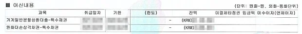 부채증명원을 발급해보니 첨부 이미지처럼 원화대손상각채권이 적혀있는데..