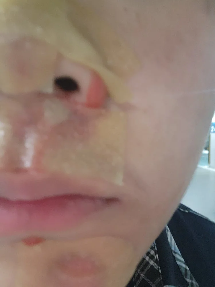 넘어져서 인중쪽에 살이 까졌다? 피나서 조퇴하고 병원왔는데 정말운좋으면 흉안진다 그러시더라구요.... 흉지기 진짜 싫은데 어떡하죠 진짜 상처에 이물질꼈다해서 레이저로 이물질다빼고 이지덤? 그런거잘붙이라는데 흉지기 ㅈㄴ싫어요 사진처럼 치료하심